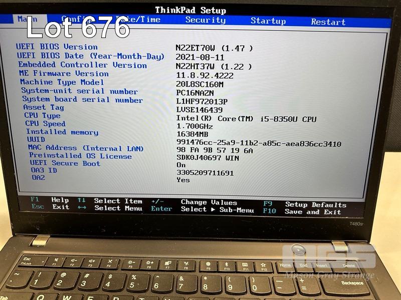 LAPTOP, LENOVO THINKPAD T480s, TYPE 20L8, CORE i5 8350U (8TH GEN) @ 1.7GHz, 16GB DDR4 RAM, 256GB NVMe M.2 SSD, 14" TOUCHSCREEN (1920x1080), INTEL HD VIDEO, Wi-Fi, BLUETOOTH, WINDOWS 11 PRO INSTALLED (NO USB-C POWER SUPPLY (NOTE: MARKS ON SCREEN) S/N:PC16NAZN
