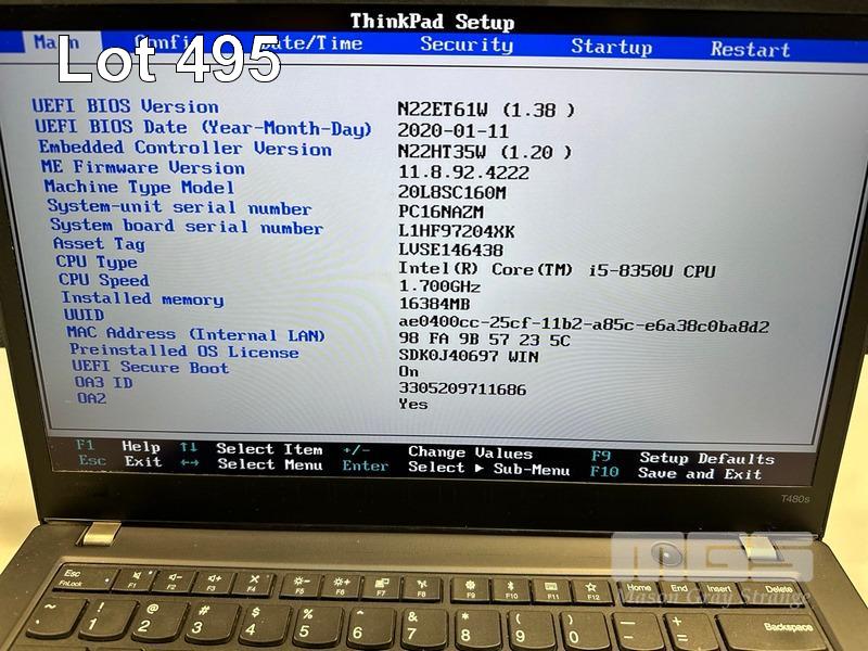 LAPTOP, LENOVO THINKPAD T480s, TYPE 20L8, CORE i5 8350U (8TH GEN) @ 1.7GHz, 16GB DDR4 RAM, 256GB NVMe M.2 SSD, 14" TOUCHSCREEN (1920x1080), INTEL HD VIDEO, Wi-Fi, BLUETOOTH, WINDOWS 11 PRO INSTALLED (NO USB-C POWER SUPPLY) (NOTE: MARKS ON SCREEN) S/N:PC16NAZM