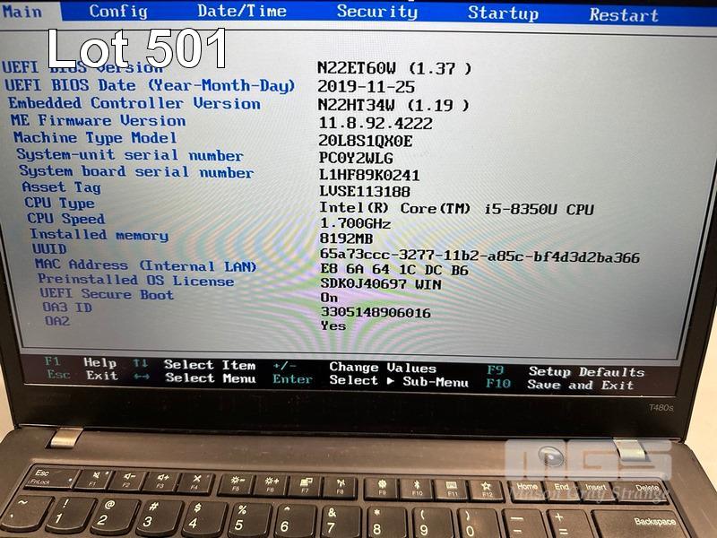 LAPTOP, LENOVO THINKPAD T480s, TYPE 20L8, CORE i5 8350U (8TH GEN) @ 1.7GHz, 8GB DDR4 RAM, 256GB NVMe M.2 SSD, 14" TOUCHSCREEN (1920x1080), INTEL HD VIDEO, Wi-Fi, BLUETOOTH, WINDOWS 11 PRO INSTALLED (NO USB-C POWER SUPPLY) (NOTE: MARKS ON SCREEN) S/N:PC0Y2WLG
