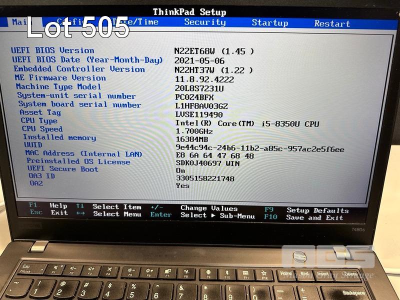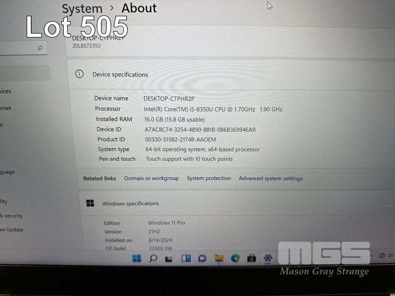 LAPTOP, LENOVO THINKPAD T480s, TYPE 20L8, CORE i5 8350U (8TH GEN) @ 1.7GHz, 16GB DDR4 RAM, 256GB NVMe M.2 SSD, 14" TOUCHSCREEN (1920x1080), INTEL HD VIDEO, Wi-Fi, BLUETOOTH, WINDOWS 11 PRO INSTALLED (NO USB-C POWER SUPPLY) (NOTE: CASE MISSING "THINKPAD" LOGO, MARKS ON SCREEN) S/N:PC0Z4BFX