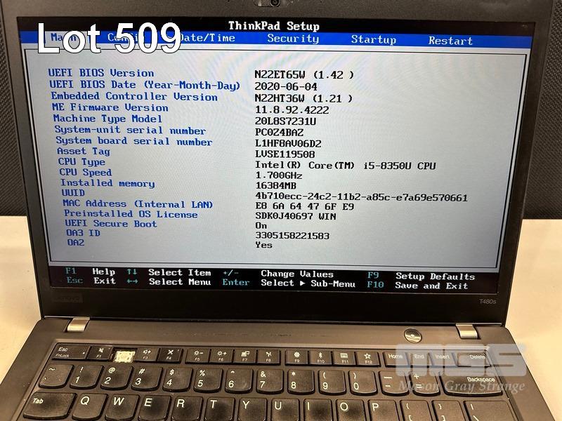 LAPTOP, LENOVO THINKPAD T480s, TYPE 20L8, CORE i5 8350U (8TH GEN) @ 1.7GHz, 16GB DDR4 RAM, 256GB NVMe M.2 SSD, 14" TOUCHSCREEN (1920x1080), INTEL HD VIDEO, Wi-Fi, BLUETOOTH, WINDOWS 11 PRO INSTALLED (NO USB-C POWER SUPPLY) (NOTE: MISSING "F2" KEY, MARKS ON SCREEN) S/N:PC0Z4BAZ