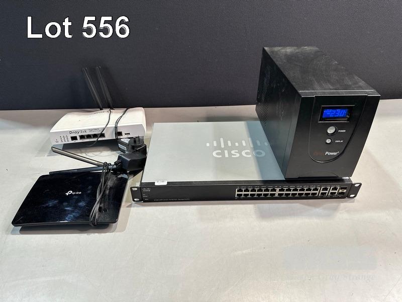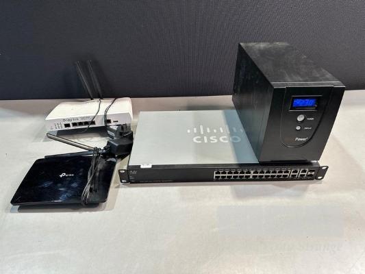 CISCO SF-300-24PP 24-PORT SWITCH, CYBERPOWER VALUE2200ELCD UPS, TP-LINK TL-MR6400 WIRELESS ROUTER, DRAYTEK VIGOR2862L SECURITY FIREWALL