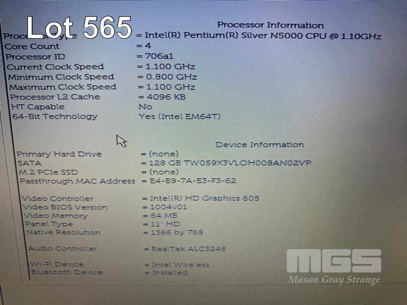 LAPTOP, DELL LATITUDE 3190, PENTIUM SILVER N5000 @ 1.1GHz, 4GB DDR4 RAM, 128GB M.2 SSD, 11.6" WIDESCREEN (1366x768), INTEL UHD GRAPHICS 605, Wi-Fi, BLUETOOTH, WINDOWS 11 PRO EDUCATION INSTALLED & POWER SUPPLY S/N:8QV56S2