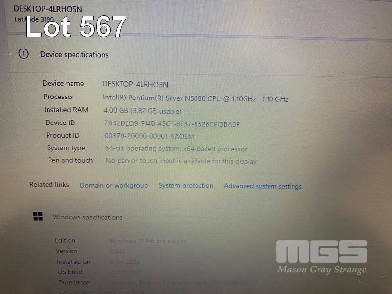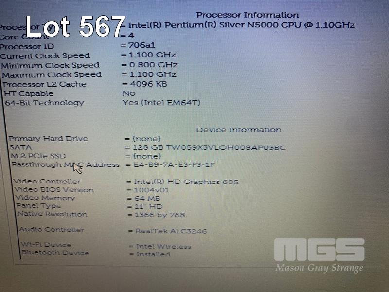 LAPTOP, DELL LATITUDE 3190, PENTIUM SILVER N5000 @ 1.1GHz, 4GB DDR4 RAM, 128GB M.2 SSD, 11.6" WIDESCREEN (1366x768), INTEL UHD GRAPHICS 605, Wi-Fi, BLUETOOTH, WINDOWS 11 PRO EDUCATION INSTALLED & POWER SUPPLY S/N:GKM76S2