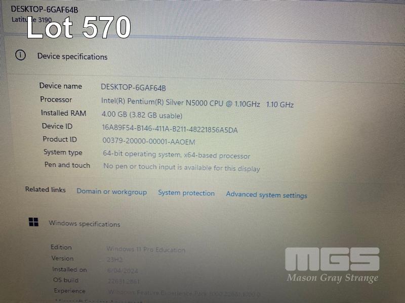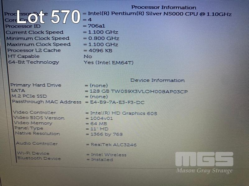 LAPTOP, DELL LATITUDE 3190, PENTIUM SILVER N5000 @ 1.1GHz, 4GB DDR4 RAM, 128GB M.2 SSD, 11.6" WIDESCREEN (1366x768), INTEL UHD GRAPHICS 605, Wi-Fi, BLUETOOTH, WINDOWS 11 PRO EDUCATION INSTALLED & POWER SUPPLY S/N:GYC76S2