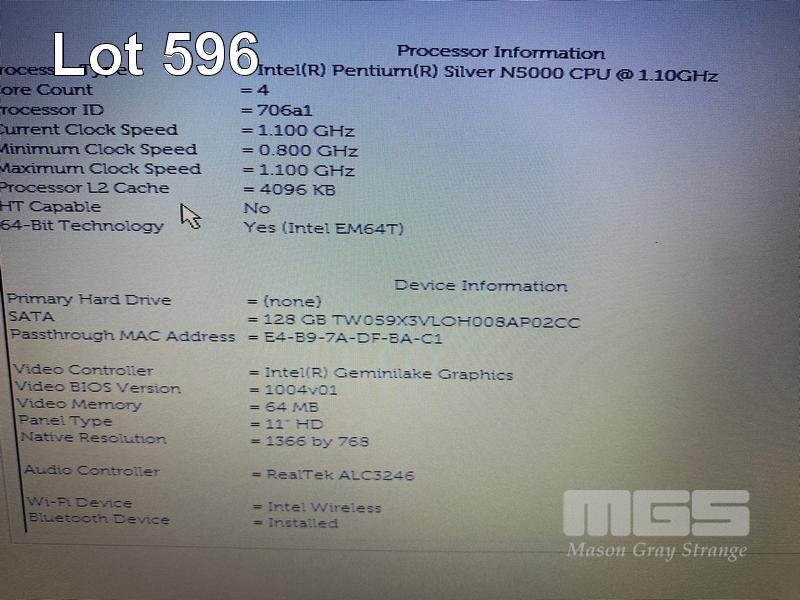 LAPTOP, DELL LATITUDE 3190, PENTIUM SILVER N5000 @ 1.1GHz, 4GB DDR4 RAM, 128GB M.2 SSD, 11.6" WIDESCREEN (1366x768), INTEL UHD GRAPHICS 605, Wi-Fi, BLUETOOTH, WINDOWS 11 PRO EDUCATION INSTALLED & POWER SUPPLY S/N:2K476S2