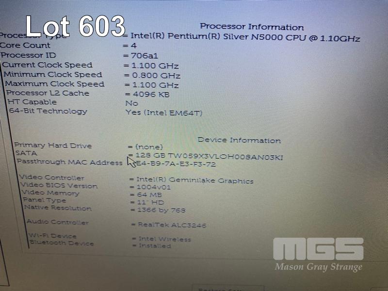 LAPTOP, DELL LATITUDE 3190, PENTIUM SILVER N5000 @ 1.1GHz, 4GB DDR4 RAM, 128GB M.2 SSD, 11.6" WIDESCREEN (1366x768), INTEL UHD GRAPHICS 605, Wi-Fi, BLUETOOTH, WINDOWS 11 PRO EDUCATION INSTALLED & POWER SUPPLY S/N:F7C56S2