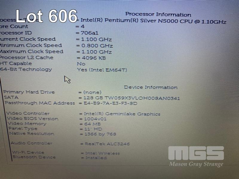 LAPTOP, DELL LATITUDE 3190, PENTIUM SILVER N5000 @ 1.1GHz, 4GB DDR4 RAM, 128GB M.2 SSD, 11.6" WIDESCREEN (1366x768), INTEL UHD GRAPHICS 605, Wi-Fi, BLUETOOTH, WINDOWS 11 PRO EDUCATION INSTALLED & POWER SUPPLY (NOTE: NOT DETECTING BATTERY, MISSING WINDOWS KEY) S/N:D1566S2