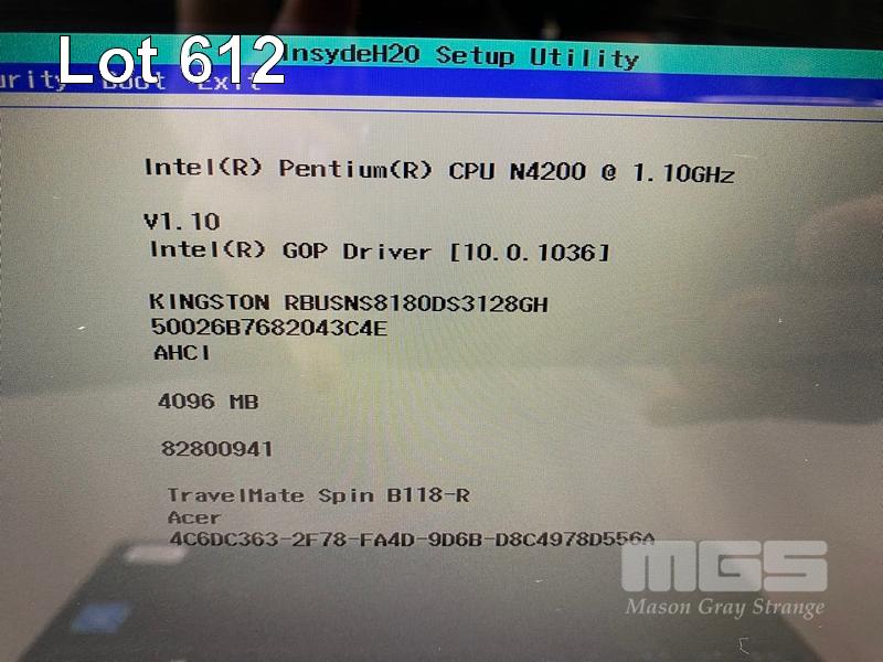 LAPTOP, ACER TRAVELMATE SPIN B118-R, PENTIUM N4200 @ 1.1GHz, 4GB RAM, 128GB M.2 SSD, 11.6" TOUCHSCREEN (1366x768), Wi-Fi, BLUETOOTH, WINDOWS 11 PRO EDUCATION INSTALLED & POWER SUPPLY (NOTE: BUBBLE MARKS ON SCREEN) S/N:82800941