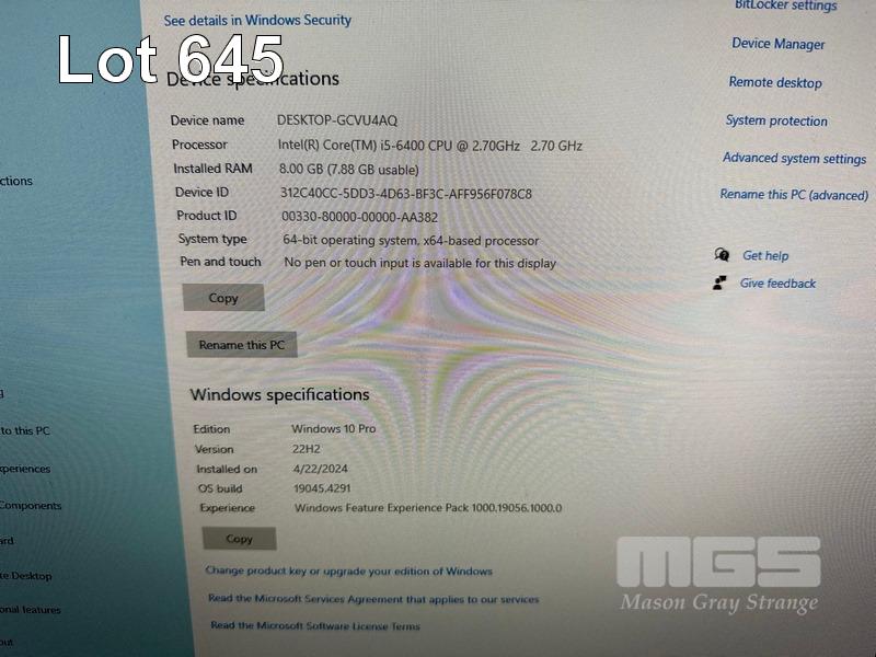 DESKTOP PC, CUSTOM BUILT, CORE i5 6400 (6TH GEN) @ 2.7GHz, 8GB DDR4 RAM, 1TB SATA HDD, DVD-RW, Wi-Fi, WINDOWS 10 PRO INSTALLED (NO KEYBOARD, NO MOUSE)