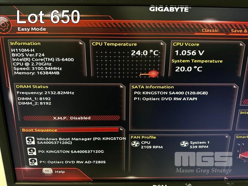 DESKTOP PC, CUSTOM BUILT, CORE i5 6400 (6TH GEN) @ 2.7GHz, 8GB DDR4 RAM, 120GB SSD, DVD-RW, WINDOWS 10 PRO INSTALLED (NO KEYBOARD, NO MOUSE) S/N:160023