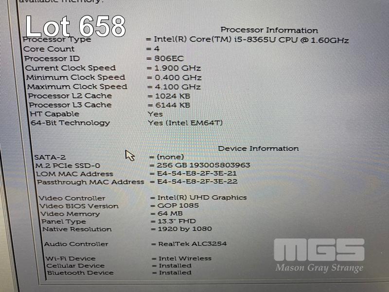 LAPTOP, DELL LATITUDE 5300, CORE i5 8365U (8TH GEN) @ 1.6GHz, 8GB DDR4 RAM, 256GB NVMe M.2 SSD, 13.3" WIDESCREEN (1920x1080), INTEL UHD GRAPHICS 620, Wi-Fi, CELLULAR, BLUETOOTH, WINDOWS 11 PRO INSTALLED (NO POWER SUPPLY) (NOTE: BATTERY NOT HOLDING CHARGE, MARKS ON SCREEN) S/N:2K6GNT2