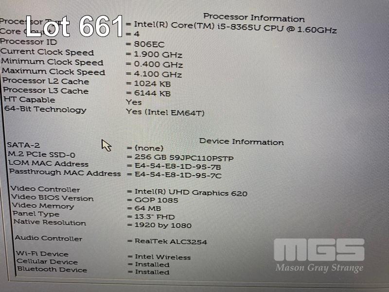 LAPTOP, DELL LATITUDE 5300, CORE i5 8365U (8TH GEN) @ 1.6GHz, 8GB DDR4 RAM, 256GB NVMe M.2 SSD, 13.3" WIDESCREEN (1920x1080), INTEL UHD GRAPHICS 620, Wi-Fi, CELLULAR, BLUETOOTH, WINDOWS 11 PRO INSTALLED (NO POWER SUPPLY) (NOTE: BATTERY NOT HOLDING CHARGE, MARKS ON SCREEN) S/N:8SCYLT2