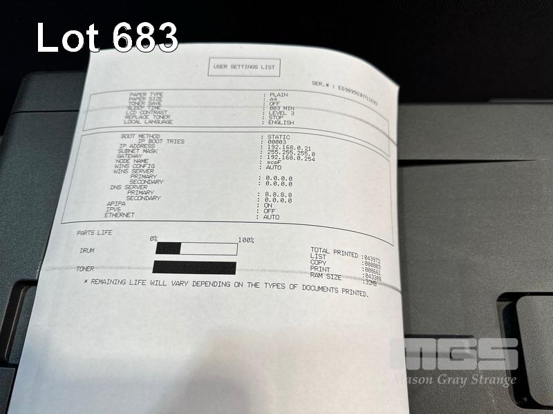 PRINTER, BROTHER DCP-7065DN MFC LASER, 43,972 PAGES (TEST PAGE ATTACHED - POOR)