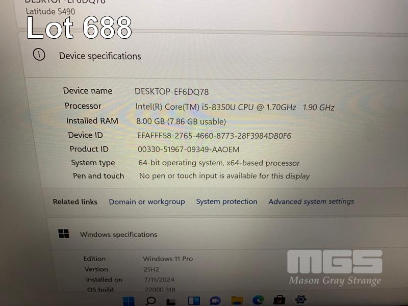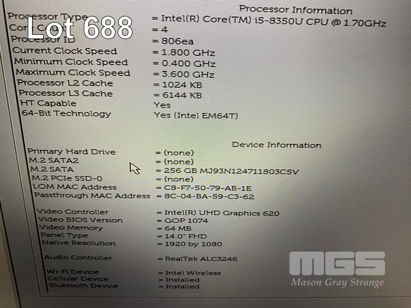 LAPTOP, DELL LATITUDE 5490, CORE i5 8350U (8TH GEN) @ 1.7GHz, 8GB DDR4 RAM, 256GB M.2 SSD, 14" WIDESCREEN (1920x1080), INTEL UHD GRAPHICS 620, Wi-Fi, CELLUAR, BLUETOOTH, WINDOWS 11 PRO INSTALLED (NO POWER SUPPLY) S/N:4MR0QV2