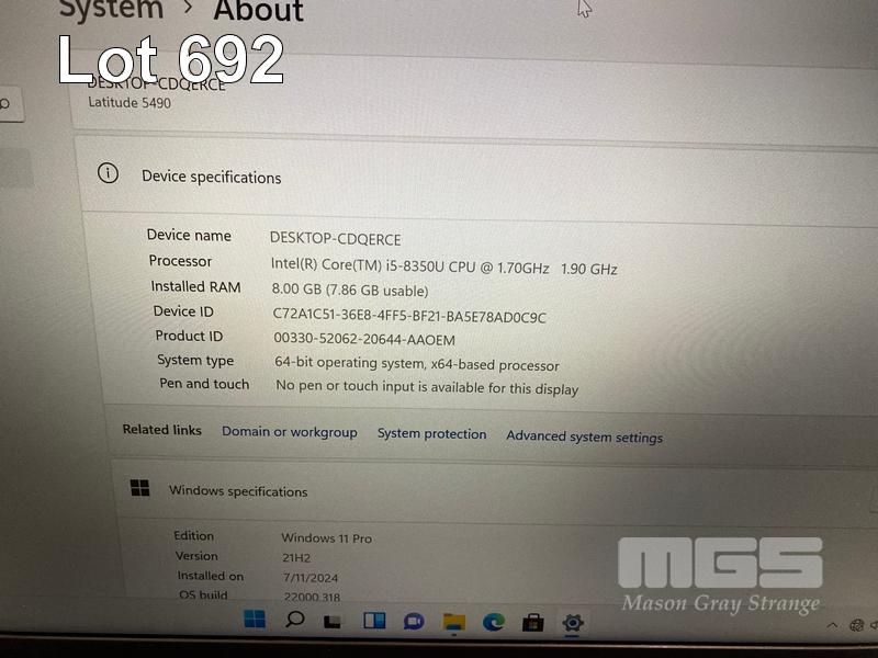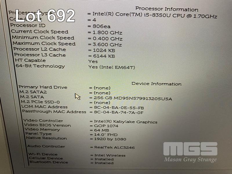 LAPTOP, DELL LATITUDE 5490, CORE i5 8350U (8TH GEN) @ 1.7GHz, 8GB DDR4 RAM, 256GB M.2 SSD, 14" WIDESCREEN (1920x1080), INTEL UHD GRAPHICS 620, Wi-Fi, CELLUAR, BLUETOOTH, WINDOWS 11 PRO INSTALLED (NO POWER SUPPLY) S/N:F08P1X2