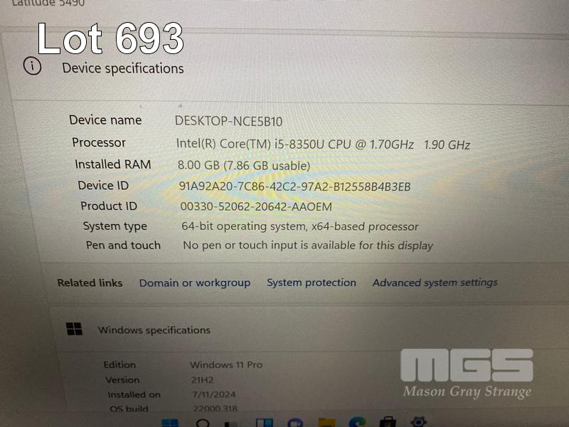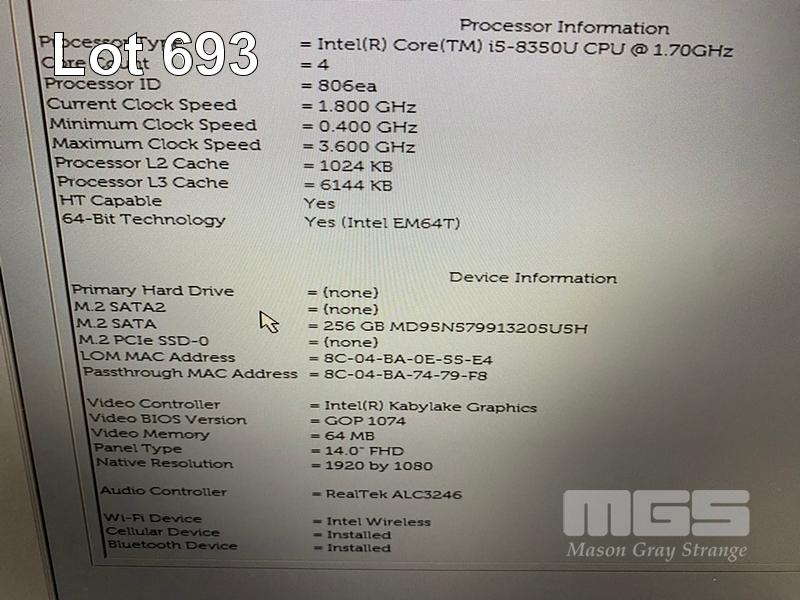 LAPTOP, DELL LATITUDE 5490, CORE i5 8350U (8TH GEN) @ 1.7GHz, 8GB DDR4 RAM, 256GB M.2 SSD, 14" WIDESCREEN (1920x1080), INTEL UHD GRAPHICS 620, Wi-Fi, CELLUAR, BLUETOOTH, WINDOWS 11 PRO INSTALLED (NO POWER SUPPLY) (NOTE: MINOR MARKS ON SCREEN) S/N:F1MP1X2