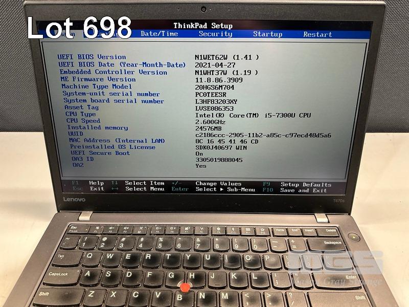 LAPTOP, LENOVO THINKPAD T470s, TYPE 20HG, CORE i5 7300U (7TH GEN) @ 2.6GHz, 24GB DDR4 RAM, 256GB NVMe M.2 SSD, 14" TOUCHSCREEN (1920x1080), INTEL HD VIDEO, Wi-Fi, BLUETOOTH, WINDOWS 10 PRO INSTALLED & POWER SUPPLY (NOTE: MINOR MARKS ON SCREEN) S/N:PC0TEESR