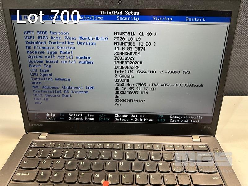 LAPTOP, LENOVO THINKPAD T470s, TYPE 20HG, CORE i5 7300U (7TH GEN) @ 2.6GHz, 8GB DDR4 RAM, 256GB NVMe M.2 SSD, 14" TOUCHSCREEN (1920x1080), INTEL HD VIDEO, Wi-Fi, BLUETOOTH, WINDOWS 10 PRO INSTALLED & POWER SUPPLY (NOTE: MARKS ON SCREEN) S/N:PC0TG9ZY