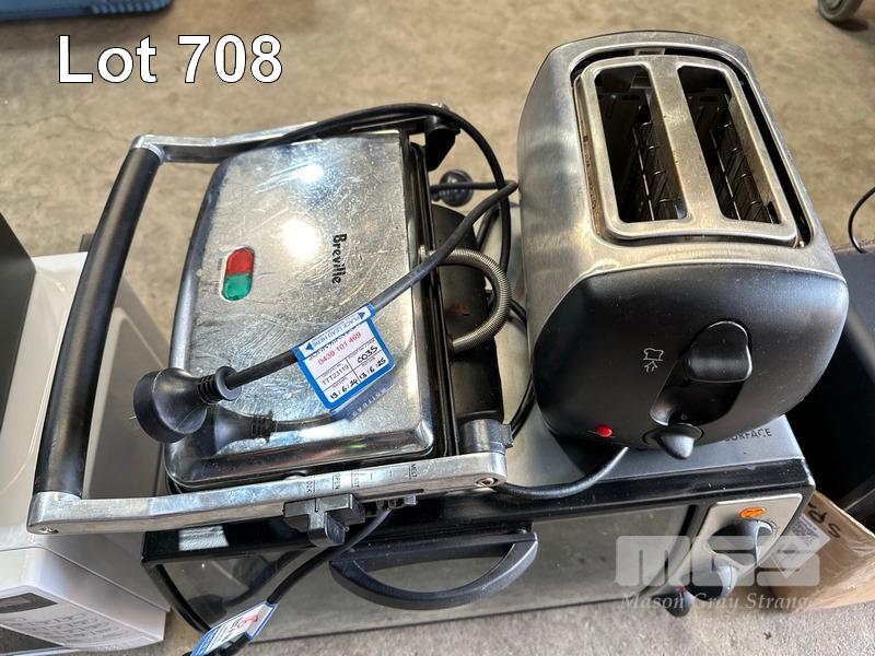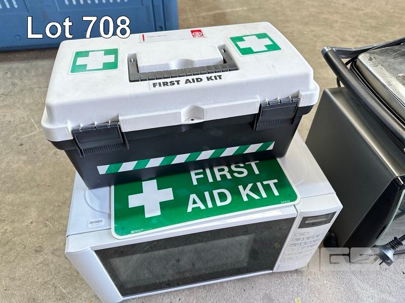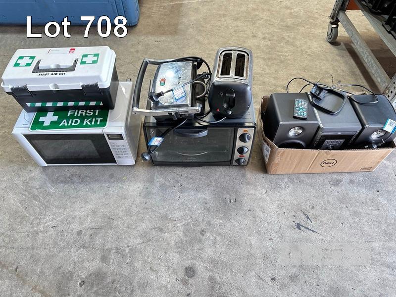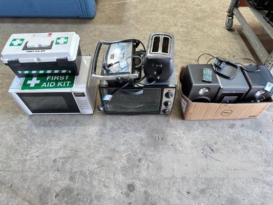 FIRST AID KIT, BRILLIANT BASICS MICROWAVE, BREVILLE SANDWICH PRESS, TOASTER, SUNBEAM PIZZA BAKE & GRILL, SANYO MICRO COMPONENT STEREO