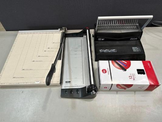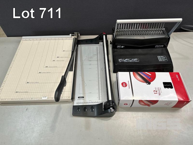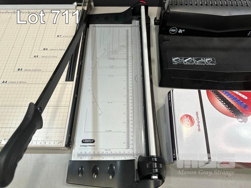 PAPER CUTTER 18" x 15", LOWELL A3 PAPER TRIMMER, GBC A10 BINDER