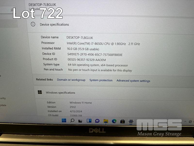 LAPTOP, DELL LATITUDE 7390, CORE i7 8650U (8TH GEN) @ 1.9GHz, 16GB DDR4 RAM, 512GB M.2 SSD, 13.3" WIDESCREEN (1920x1080), INTEL UHD GRAPHICS 620, Wi-Fi, BLUETOOTH, WINDOWS 11 HOME INSTALLED & POWER SUPPLY (NOTE: SWOLLEN BATTERY) S/N:402CRQ2
