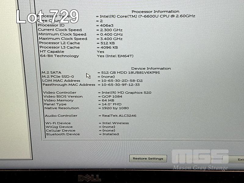 LAPTOP, DELL LATITUDE 7480, CORE i7 6600U (6TH GEN) @ 2.6GHz, 8GB DDR4 RAM, 512GB M.2 SSD, 14" WIDESCREEN (1920x1080), INTEL HD GRAPHICS 520, Wi-Fi, BLUETOOTH, WINDOWS 10 HOME INSTALLED & POWER SUPPLY S/N:3RN9PN2