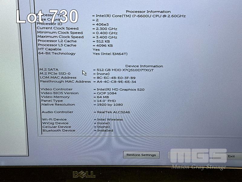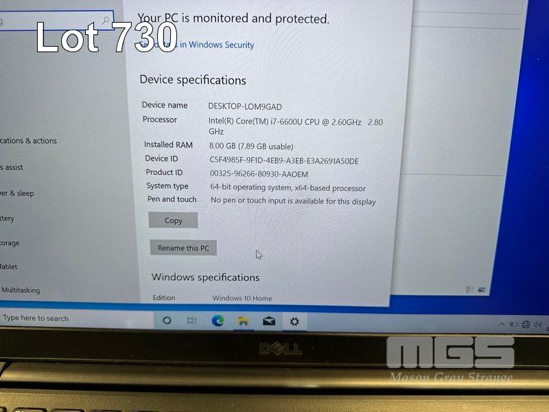 LAPTOP, DELL LATITUDE 7480, CORE i7 6600U (6TH GEN) @ 2.6GHz, 8GB DDR4 RAM, 512GB M.2 SSD, 14" WIDESCREEN (1920x1080), INTEL HD GRAPHICS 520, Wi-Fi, BLUETOOTH, WINDOWS 10 HOME INSTALLED (NO POWER SUPPLY) (NOTE: DAMAGE CASING UNDERNEATH, BATTERY NOT HOLDING CHARGE, MARKS ON SCREEN) S/N:2CCBHM2