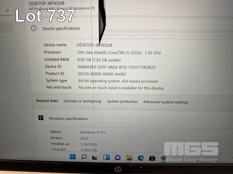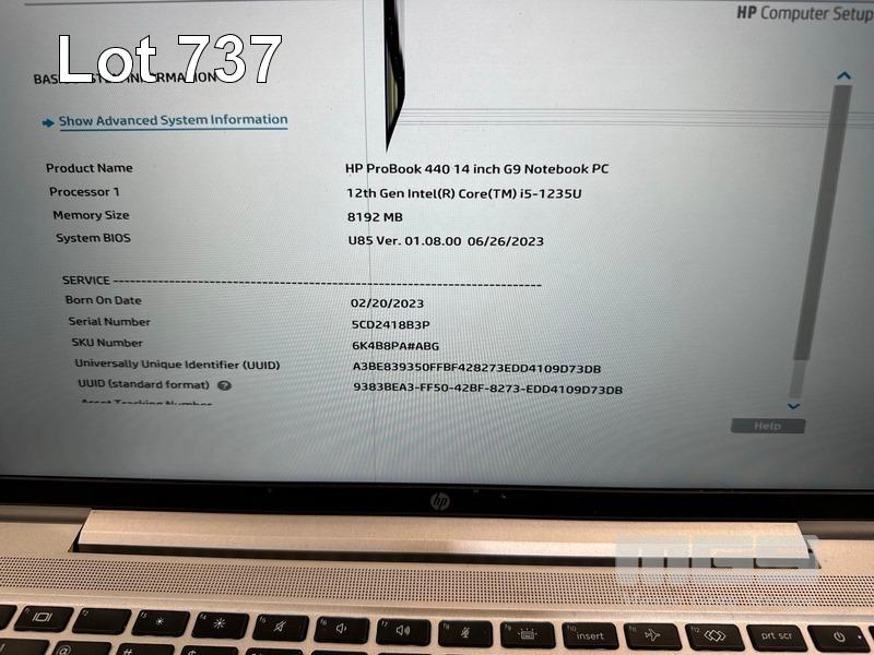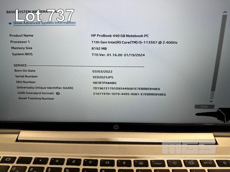 5 x LAPTOPS INC. - 4 x HP PROBOOK 440 G8, CORE i5 1135GY (11TH GEN) @ 2.4GHz, 8GB DDR4 RAM, 256GB NVMe M.2 SSD - 1 x HP PROBOOK 440 G9, CORE i5 1235U (12TH GEN) @ 1.3GHz, 8GB DDR4 RAM, 256GB NVMe M.2 SSD (NO POWER SUPPLIES) (NOTE: ALL VARIOUS DAMAGED SCREENS & CASING) S/N:5CD2025JP5, 5CD2025JP3, 5CD2025JP9, 5CD2025JQS, 5CD2418B3P
