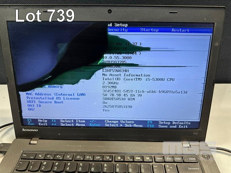 7 x LAPTOPS INC. - LENOVO THINKPAD T470, 8GB RAM, NO HDD (FAULTY - DEAD) - LENOVO THINKPAD T470, NO RAM, NO HDD (FAULTY - DEAD) - LENOVO THINKPAD T470, 8GB RAM, NO HDD (MAJOR DAMAGE, NO BATTERY) - LENOVO THINKPAD T460, CORE i5 6300U @ 2.4GHz, 8GB RAM, NO HDD (DAMAGED SCREEN) - LENOVO THINKPAD T580, CORE i5 8350U @ 1.7GHz, 16GB RAM, 256GB SSD (DAMAGED SCREEN) - LENOVO THINKPAD T460, CORE i5 6300U @ 2.4GHz, 8GB RAM, 500GB HDD (DAMAGED SCREEN, NO BATTERY) - LENOVO THINKPAD T450, CORE i5 5300U @ 2.3GHz, 8GB RAM, NO HDD (DAMAGED SCREEN) (NO POWER SUPPLIES) S/N:PF0TJHZJ, PF0U4JGQ, PF0U4JH1, PC0H918Z, R90RML8F, PC0HS8TE, PC08CXMC