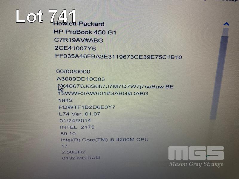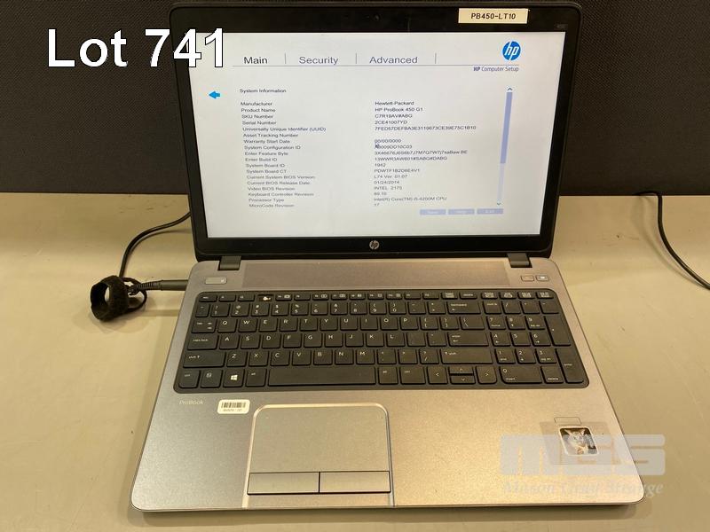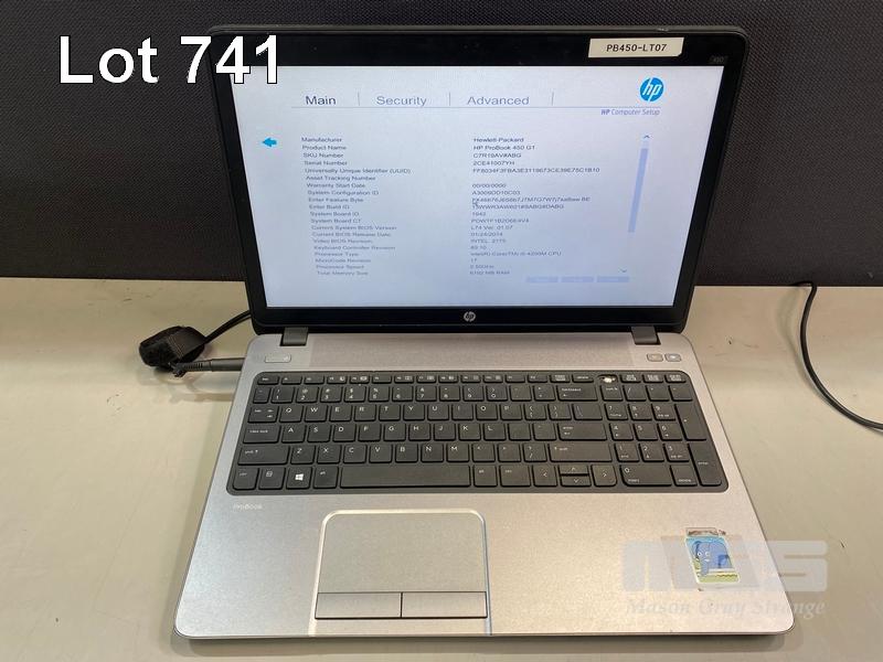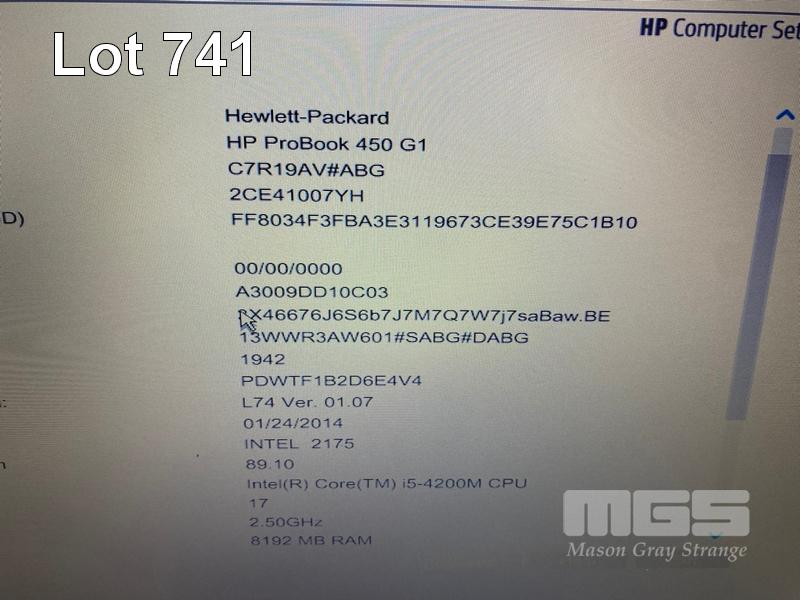 6 x LAPTOPS INC. - HP PROBOOK 450 G1, CORE i5 4200M @ 2.5GHz, 8GB RAM, 320GB SATA HDD (NOTE: 1 x MISSING "Q" KEY, 1 x MISSING "ESC" KEY, 1 x MISSING "HOME" KEY) (WITH POWER SUPPLIES) S/N:2CE41007YD, 2CE41007YF, 2CE41007Y9, 2CE41007YK, 2CE41007Y6, 2CE41007YH