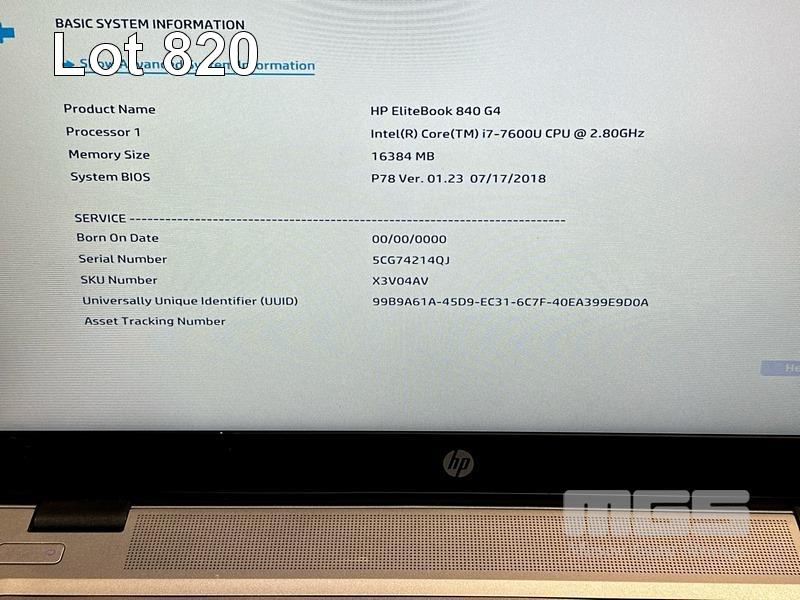 LAPTOP, HP ELITEBOOK 840 G4, CORE i7 7600U (7TH GEN) @ 2.8GHz, 16GB DDR4 RAM, 256GB M.2 SSD, 14" WIDESCREEN (1920x1080), INTEL HD VIDEO, Wi-Fi, CELLULAR, BLUETOOTH, WINDOWS 10 PRO INSTALLED (NO POWER SUPPLY) (NOTE: BATTERY NOT CHARGING, MARKS ON SCREEN) S/N:5CG74214QJ