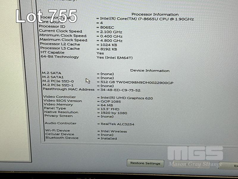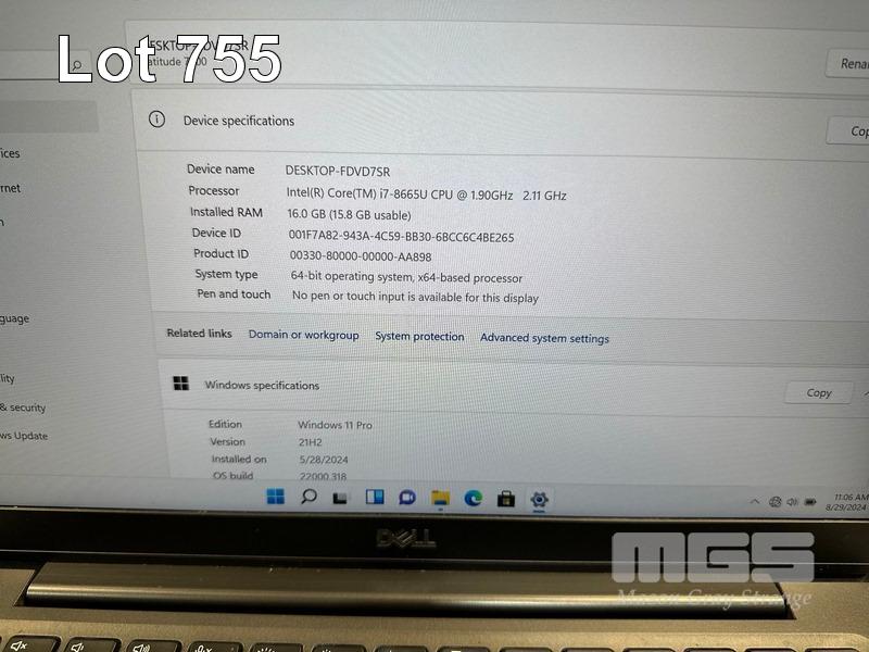 LAPTOP, DELL LATITUDE 7300, CORE i7 8665U (8TH GEN) @ 1.9GHz, 16GB DDR4 RAM, 512GB NVMe M.2 SSD, 13.3" WIDESCREEN (1920x1080), INTEL UHD GRAPHICS 620, Wi-Fi, BLUETOOTH, WINDOWS 11 HOME INSTALLED (NO POWER SUPPLY) (NOTE: MINOR DAMAGE TO CASING, RUBBER PAD PART MISSING ON BOTTOM OF LAPTOP) S/N:7BZR2Z2