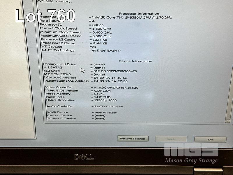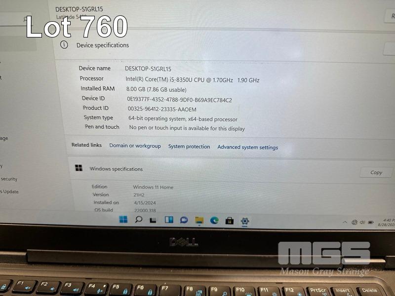 LAPTOP, DELL LATITUDE 5490, CORE i5 8350U (8TH GEN) @ 1.7GHz, 8GB DDR4 RAM, 512GB M.2 SSD, 14" WIDESCREEN (1920x1080), INTEL UHD GRAPHICS 620, Wi-Fi, BLUETOOTH, WINDOWS 11 HOME INSTALLED & POWER SUPPLY (NOTE: BATTERY NOT HOLDING CHARGE, MARKS & SPOTS ON SCREEN) S/N:8PDRRQ2