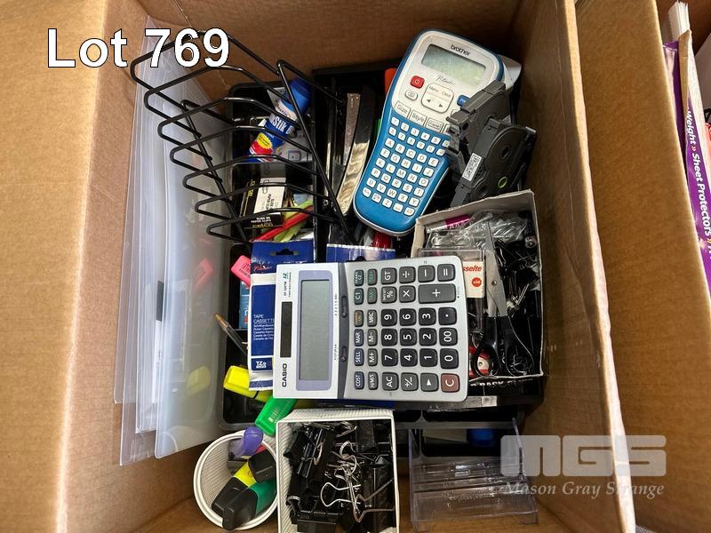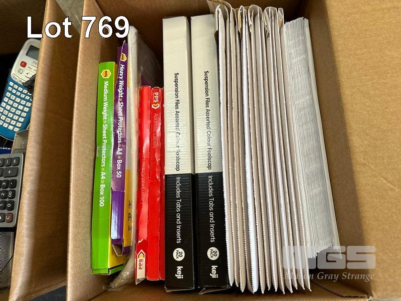5 x BOXES ASST OFFICE STATIONERY, A4 & A3 PAPER REAMS, STAPLERS, HOLE PUNCHES, TAPE DISPENSERS ETC