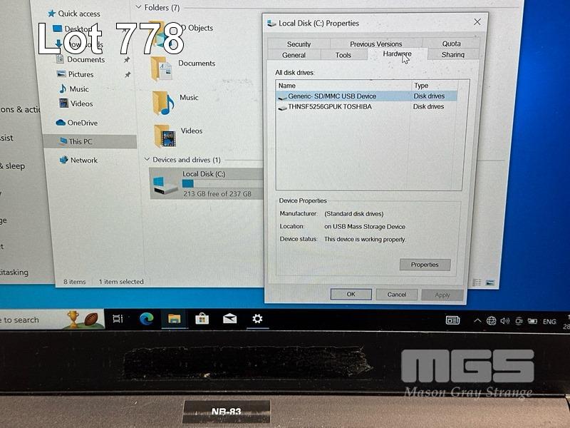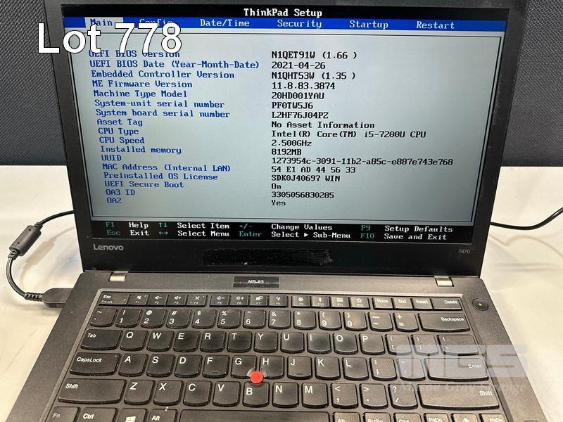 LAPTOP, LENOVO THINKPAD T470, TYPE 20HE, CORE i5 7200U (7TH GEN) @ 2.5GHz, 8GB DDR4 RAM, 256GB NVMe M.2 SSD, 14" WIDESCREEN (1920x1080), INTEL HD VIDEO, Wi-Fi, BLUETOOTH, WINDOWS 10 PRO INSTALLED & POWER SUPPLY (NOTE: BATTERY NOT CHARGING, MARKS ON SCREEN) S/N:PF0TW5J6