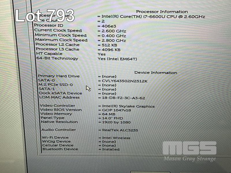 LAPTOP, DELL LATITUDE E5470, CORE i7 6600U (6TH GEN) @ 2.6GHz, 16GB DDR4 RAM, 512GB M.2 SSD, 14" TOUCHSCREEN (1920x1080), INTEL HD GRAPHICS 520, Wi-Fi, BLUETOOTH, WINDOWS 10 HOME INSTALLED, DOCKING STATION & POWER SUPPLY (NOTE: KEYBOARD FAULT - SPACEBAR) S/N:CQ11PF2