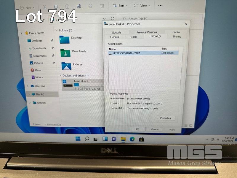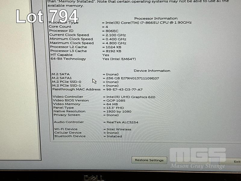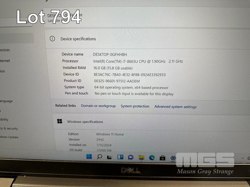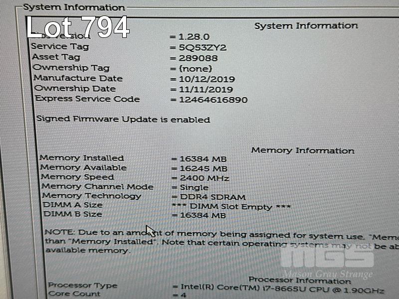LAPTOP, DELL LATITUDE 7300, CORE i7 8665U (8TH GEN) @ 1.9GHz, 16GB DDR4 RAM, 256GB M.2 SSD, 13.3" WIDESCREEN (1920x1080), INTEL UHD GRAPHICS 620, Wi-Fi, BLUETOOTH, WINDOWS 11 HOME INSTALLED (NO POWER SUPPLY) (NOTE: NO BATTERY, RUBBER PAD PART MISSING ON BOTTOM OF LAPTOP, MINOR MARKS ON SCREEN) S/N:5Q53ZY2