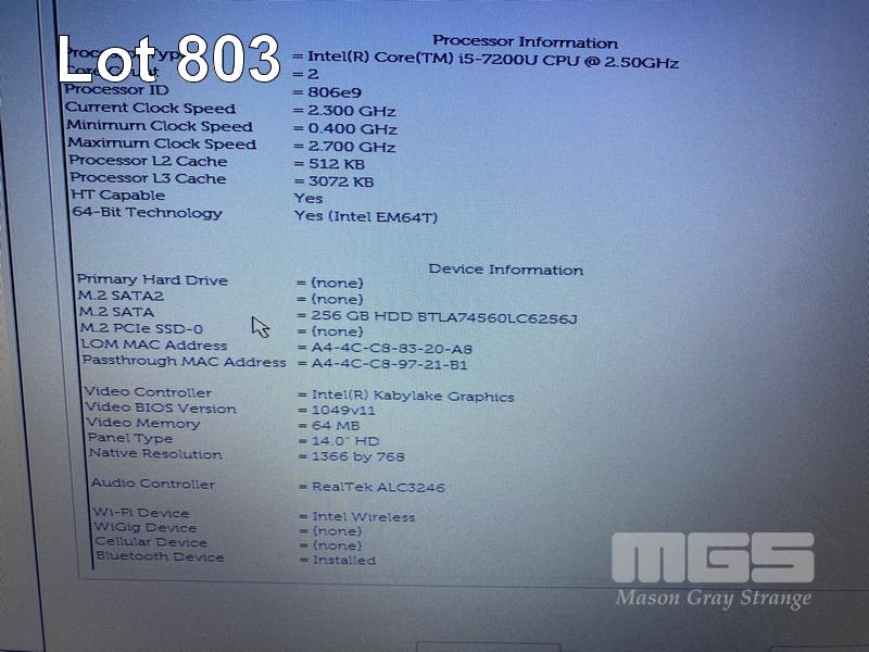 LAPTOP, DELL LATITUDE 5480, CORE i5 7200U (7TH GEN) @ 2.5GHz, 8GB DDR4 RAM, 256GB M.2 SSD, 14" WIDESCREEN (1366x768), INTEL HD GRAPHICS 620, Wi-Fi, BLUETOOTH, WINDOWS 11 HOME INSTALLED & POWER SUPPLY S/N:1YYV3M2