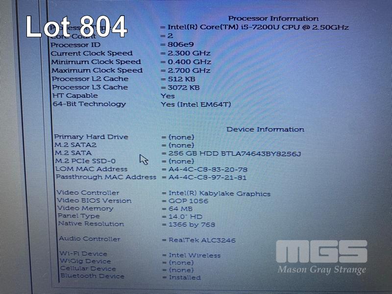 LAPTOP, DELL LATITUDE 5480, CORE i5 7200U (7TH GEN) @ 2.5GHz, 8GB DDR4 RAM, 256GB M.2 SSD, 14" WIDESCREEN (1366x768), INTEL HD GRAPHICS 620, Wi-Fi, BLUETOOTH, WINDOWS 11 HOME INSTALLED & POWER SUPPLY S/N:7Z9W3M2