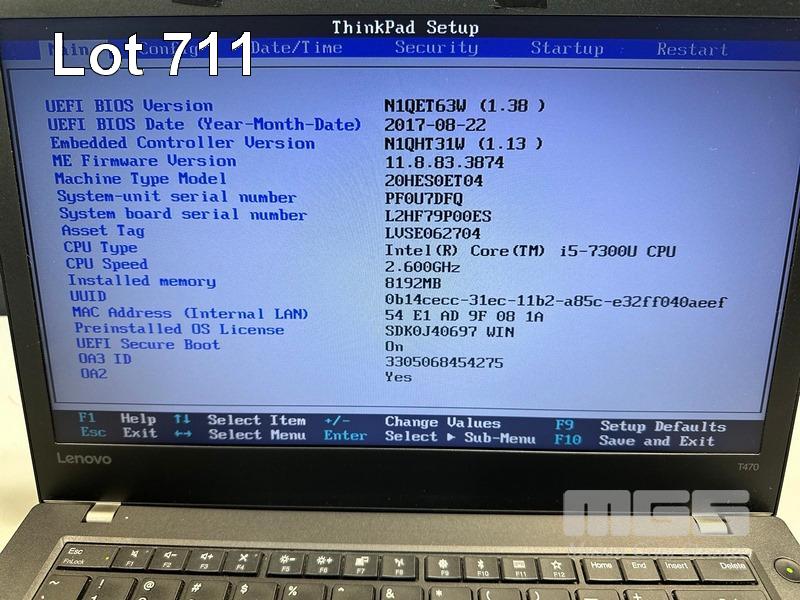 LAPTOP, LENOVO THINKPAD T470, TYPE 20HE, CORE i5 7300U (7TH GEN) @ 2.6GHz, 8GB DDR4 RAM, 256GB NVMe M.2 SSD, 14" WIDESCREEN (1366x768), INTEL HD VIDEO, Wi-Fi, BLUETOOTH, WINDOWS 10 PRO INSTALLED & POWER SUPPLY S/N:PF0U7DFQ