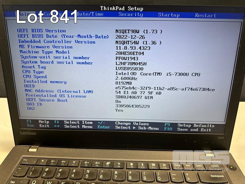 LAPTOP, LENOVO THINKPAD T470, TYPE 20HE, CORE i5 7300U (7TH GEN) @ 2.6GHz, 8GB DDR4 RAM, 256GB NVMe M.2 SSD, 14" WIDESCREEN (1366x768), INTEL HD VIDEO, Wi-Fi, BLUETOOTH, WINDOWS 10 PRO INSTALLED & POWER SUPPLY (NOTE: MARKS ON SCREEN) S/N:PF0W1943