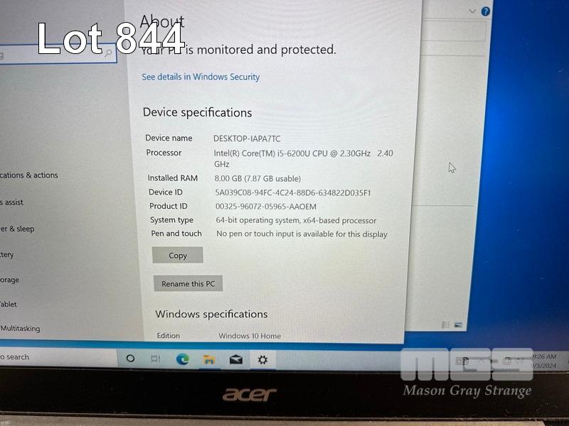 LAPTOP, ACER TRAVELMATE X349-M, CORE i5 6200U (6TH GEN) @ 2.3GHz, 8GB DDR4 RAM, 128GB M.2 SSD, 14" WIDESCREEN (1920x1080), INTEL HD VIDEO, Wi-Fi, BLUETOOTH, WINDOWS 10 HOME INSTALLED & POWER SUPPLY (NOTE: ENGRAVED BOTTOM OF CASING) S/N:NXVDFSA00270201DF87200