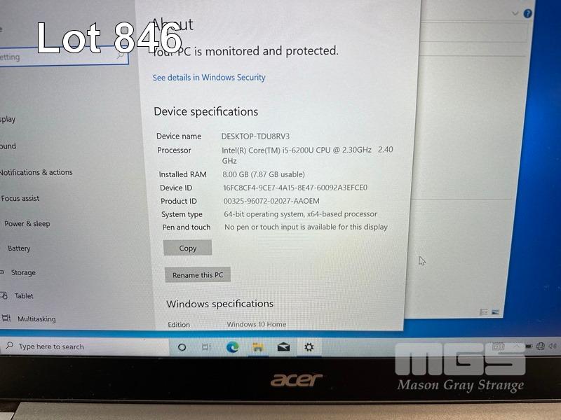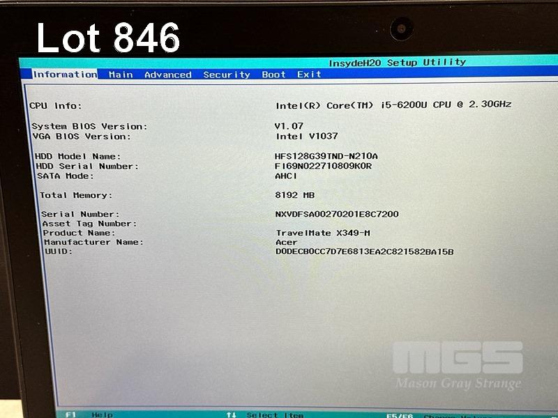 LAPTOP, ACER TRAVELMATE X349-M, CORE i5 6200U (6TH GEN) @ 2.3GHz, 8GB DDR4 RAM, 128GB M.2 SSD, 14" WIDESCREEN (1920x1080), INTEL HD VIDEO, Wi-Fi, BLUETOOTH, WINDOWS 10 HOME INSTALLED & POWER SUPPLY (NOTE: ENGRAVED BOTTOM OF CASING) S/N:NXVDFSA00270201E8C7200