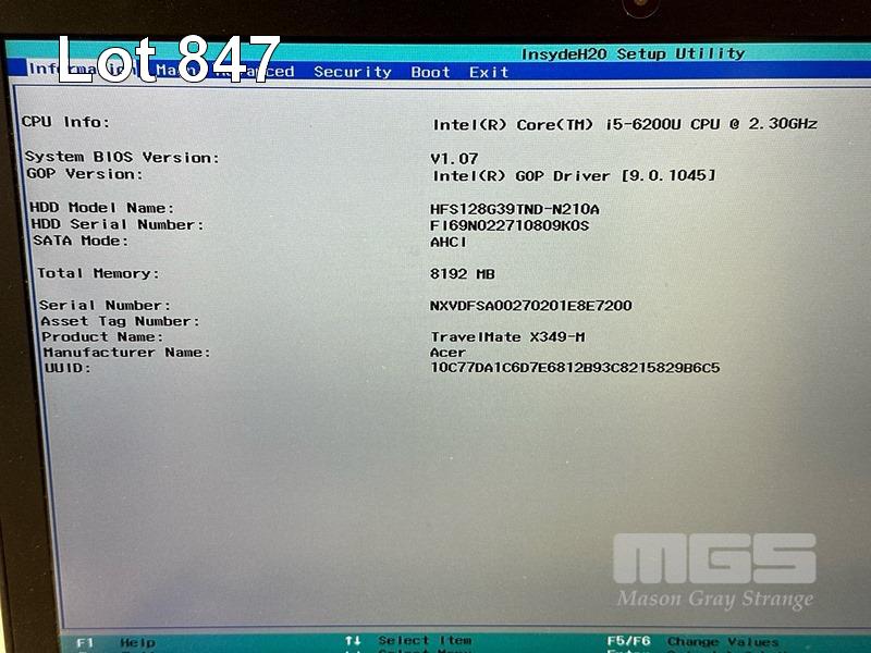 LAPTOP, ACER TRAVELMATE X349-M, CORE i5 6200U (6TH GEN) @ 2.3GHz, 8GB DDR4 RAM, 128GB M.2 SSD, 14" WIDESCREEN (1920x1080), INTEL HD VIDEO, Wi-Fi, BLUETOOTH, WINDOWS 10 HOME INSTALLED & POWER SUPPLY (NOTE: ENGRAVED BOTTOM OF CASING) S/N:NXVDFSA00270201E8E7200