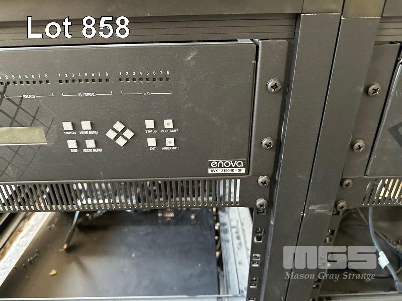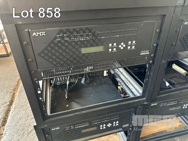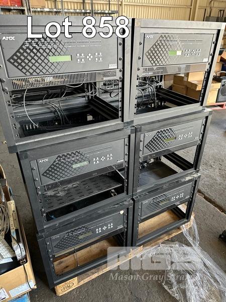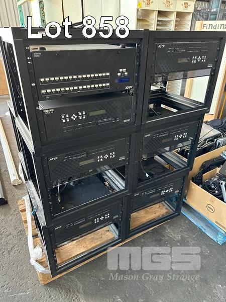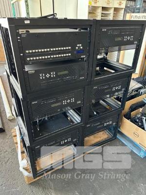 12 x DATA RACK FRAMES, EACH WITH AMX ENOVA DVX-3150HD-SP ALL-IN-ONE PRESENTATION SWITCHER (RACKS ARE 46 x 45 x 55cm)