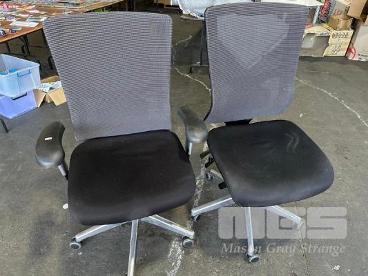 2 x STATELINE OFFICE CHAIRS, BLACK FABRIC, MID MESH BACK (1 x WITH ARMS)