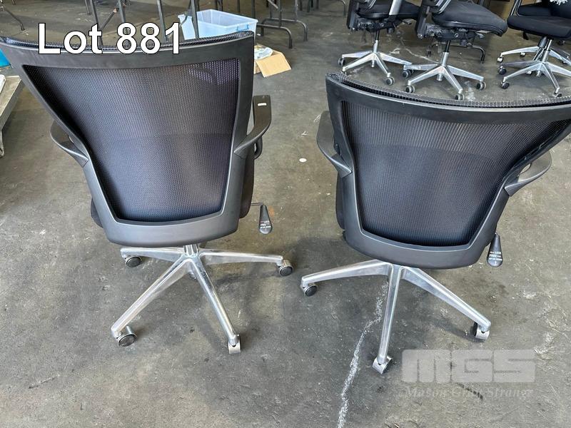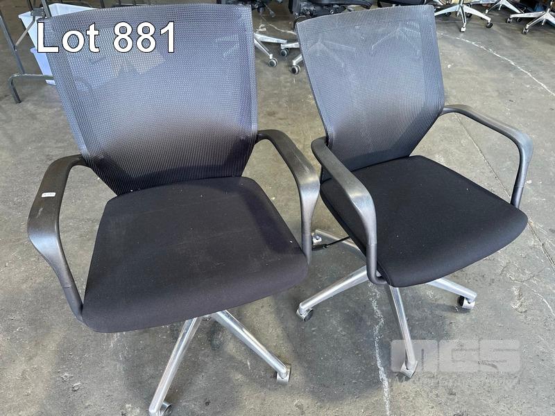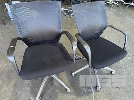 2 x OFFICE ARM CHAIRS, BLACK FABRIC, MESH BACK