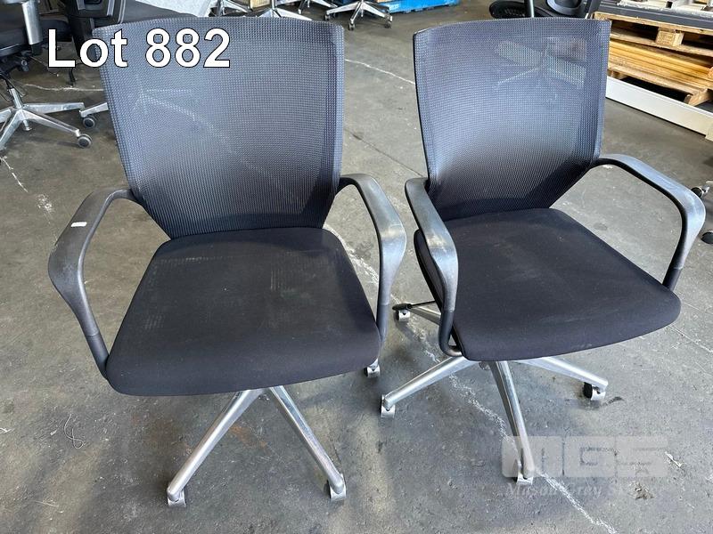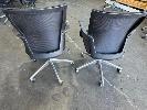 2 x OFFICE ARM CHAIRS, BLACK FABRIC, MESH BACK