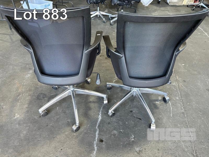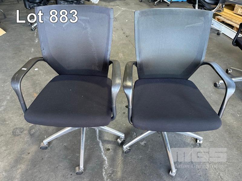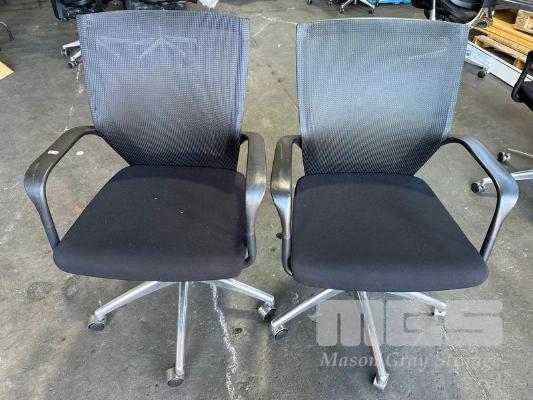 2 x OFFICE ARM CHAIRS, BLACK FABRIC, MESH BACK
